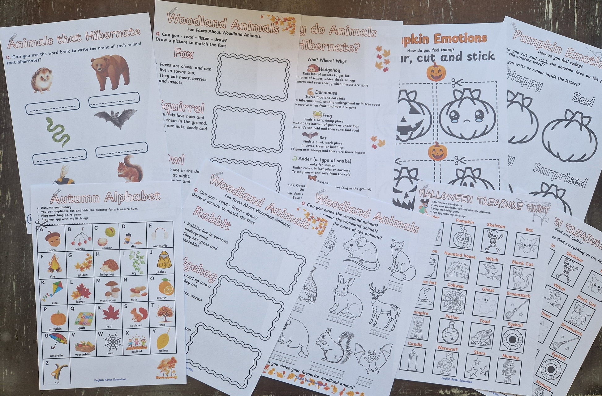 Preposition of Place - Woodland Animals - Hibernation - Harvest - Fruit & Vegetables - Halloween Colouring - Spot the Difference - Halloween Matching Pairs