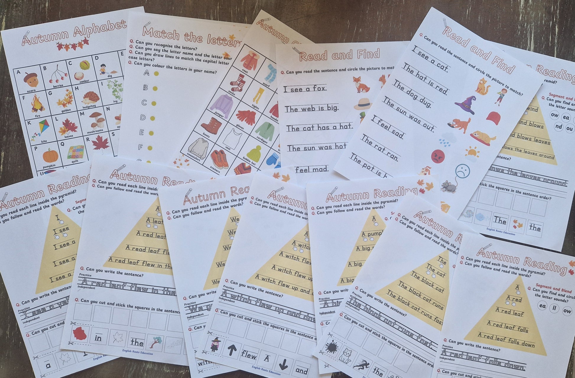 Within this vibrant 71-page Autumn themed Workbook, each sheet has multiple activities to engage and entertain your children or students with their learning of the english language.